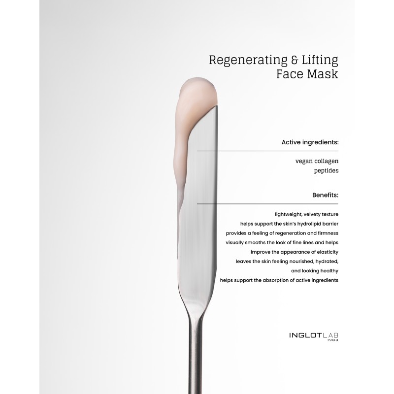 Відчуйте ефект інтенсивної регенерації за допомогою цієї маски, формула якої на 98% складається з інгредієнтів натурального походження. Її легка, оксамитова формула сприяє відновленню гідроліпідного бар'єру шкіри, зменшуючи трансепідермальну втрату води (TEWL). Формула пройшла випробування in vitro для підтримки проникнення активних інгредієнтів у роговий шар. Суміш олій (включаючи олії солодкого мигдалю та насіння соняшнику), екстрактів жимолості, базиліка та грейпфрута інтенсивно живить та відновлює пружність. Пептиди, веганський колаген та астаксантин розгладжують дрібні зморшки, покращують еластичність та загальний стан шкіри. Комплекс натуральних рослинних екстрактів служить консервантом.
